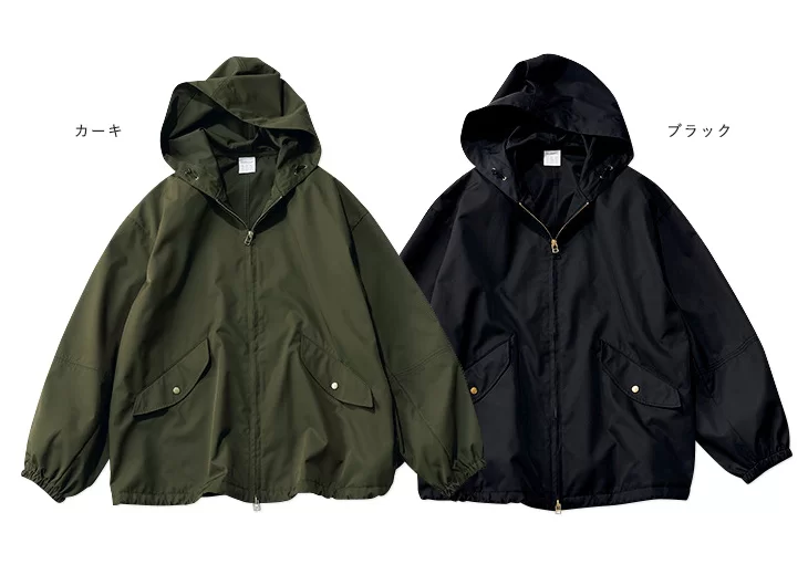 ラフに着るだけで洒落た存在感が出るマウンパライクなフーディブルゾンを、ソリッドで使い勝手のいいカーキとブラックで。マットな質感のポリエステル生地には撥水加工が施され、急な小雨やアウトドアシーンにも対応。ほどよいボリューム感が魅力の袖は、そのままではもちろん、キュッとたくし上げた様子もこなれています。厚手ニットを着ても膨張見えしにくいゆったりとした身幅×お尻が隠れる着丈のAラインシルエットで、フロントはファスナーに。ポケットの袋布は、手の甲が当たる部分が起毛素材に。ハンドウォーマーの役割を担います。