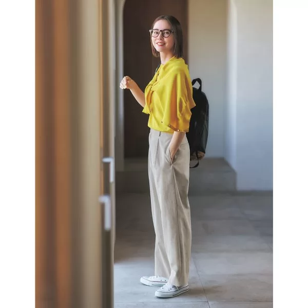 コットン&リネン混のさらっとした肌ざわりのオックス地を採用。洗濯機洗いがOKなうえに洗った後も乾きやすく、ストレッチ入りでシワになりにくいなどお手入れが簡単で、汗ばむ夏にいつでも清潔でいられるのも魅力です。透け防止加工を施し、白やオートミールの淡い色も安心して楽しめます。