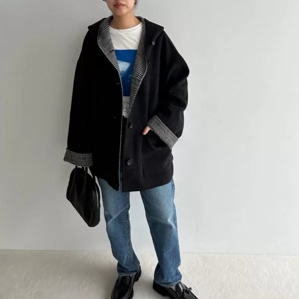 シンプルコーデを盛り上げる裏チェックの威力に注目!ミドル丈リバーコート【12closetの頼れるカジュアル名品】-アーカイブ-