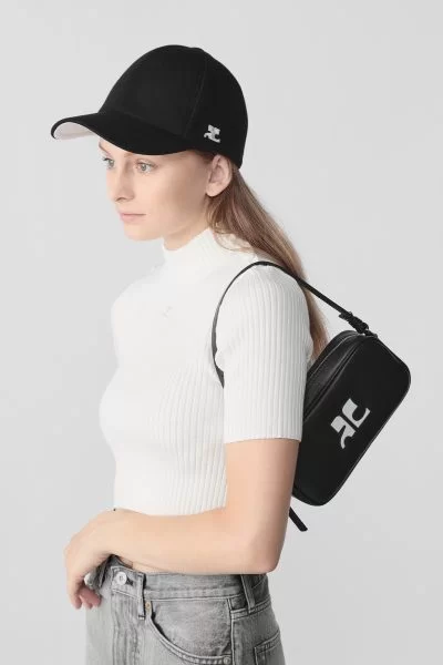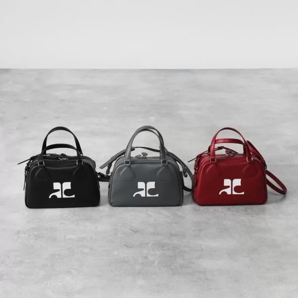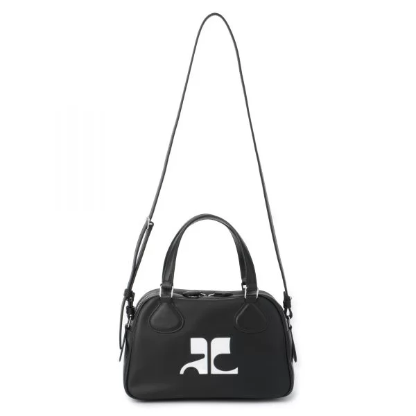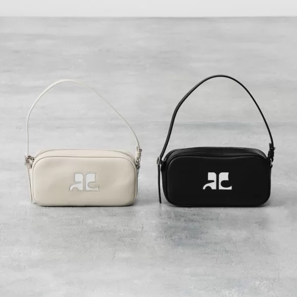 まさにトレンド真っ只中の横長シルエットのバッグ。まるでミニサイズのスクールバッグのようなシルエットがキュート。表面は光沢感のあるレザーで、内側はコットン混の生地を使用しているため、どこかカジュアルな印象も。フロントにはホワイトのレザーで、創業者のアンドレ・クレージュの頭文字をとった「ACロゴ」が大きくデザインされています。