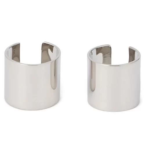 イヤリングと同じく、二つ合わせるとACロゴが完成する2個セットのリング。太めの幅で指元にモードなインパクトを与えてくれる。細めのリングと合わせたり、ダークトーンの色石を重ねたり、手元のスタイリングを自由に楽しんで。