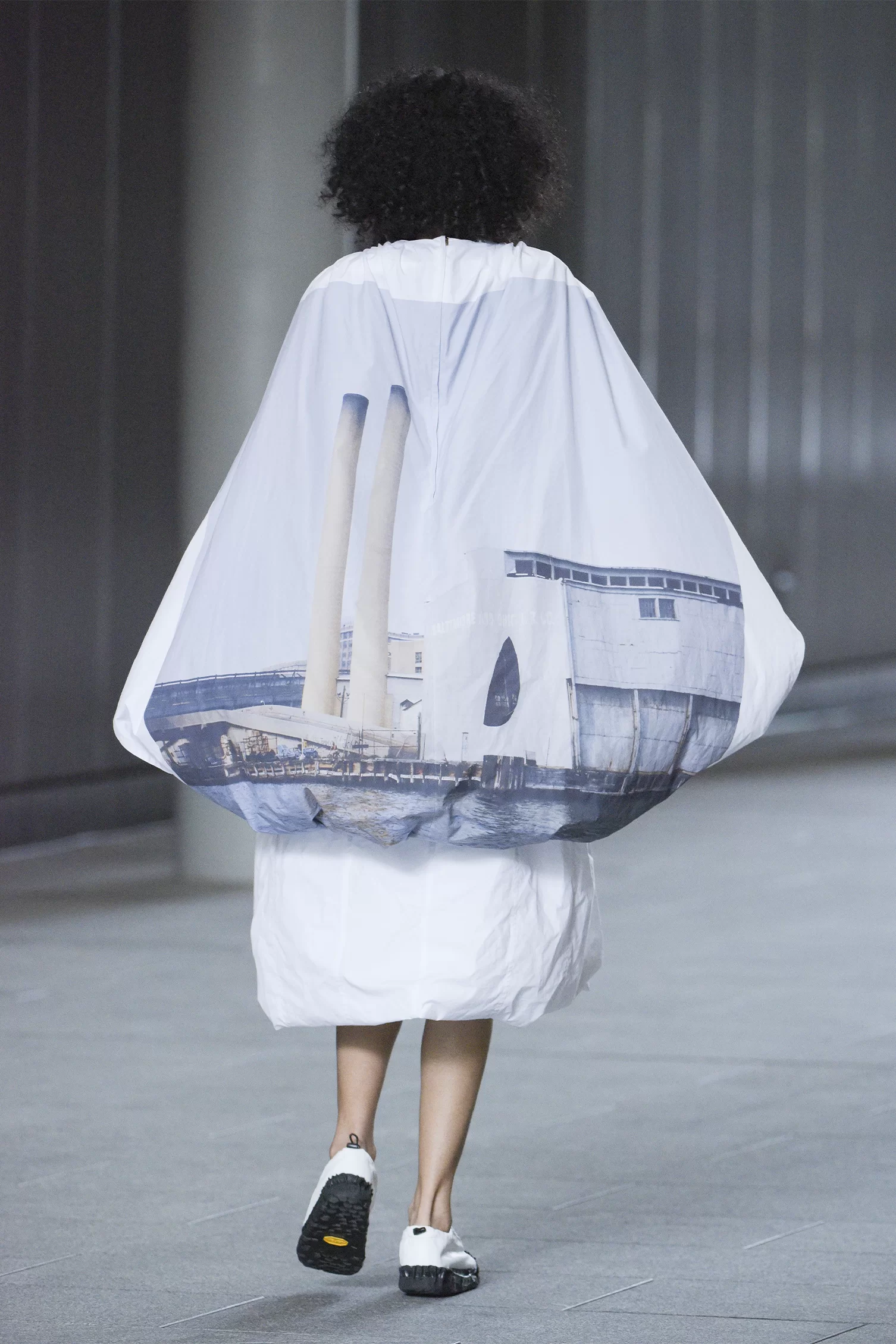 ゴードン・マッタ=クラークのアートワークをプリントしたTシャツ。モックネックと裾の広がりがTOGAらしいデザインで、インパクトが強いプリントの中に女性らしさをプラスしています。