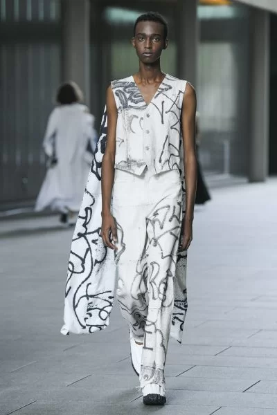 ゴードン・マッタ=クラークのアートワークを施したデニムパンツ。切りっぱなしの裾がポイントのストレートシルエット。シンプルなトップスとコーディネートしてボトムを主役に。