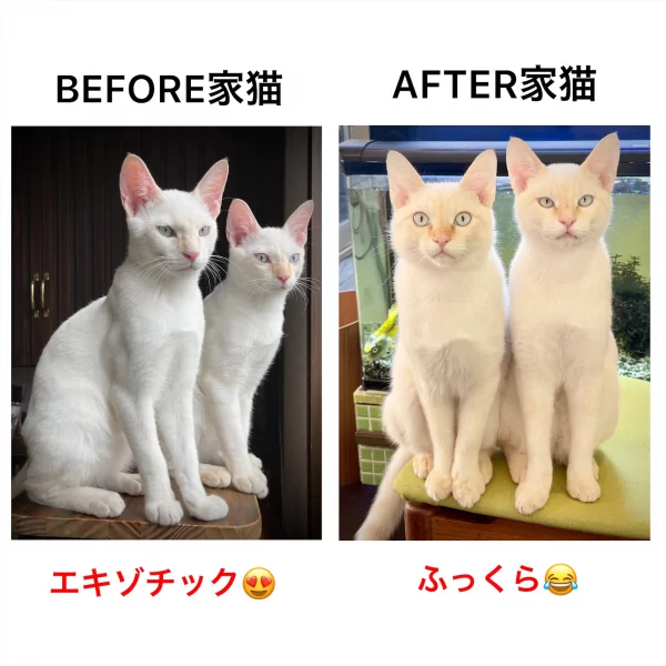「21年6月に保護され、我が家にやってきた、白猫兄弟ミミとメメです。保護当時はやせてたのですが、今はすっかりふっくらとした2匹を見ているだけで笑顔に。オフィシャルIG(@takai__yoshiko)のストーリーズでも、静止画や動画をアップしています」