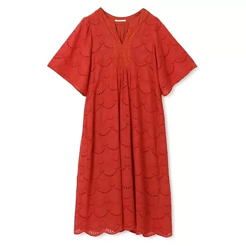 「10年以上前から大好きな「ヌキテパ」のワンピース。生産の拠点がインドで、表情のあるテキスタイルそのものや、刺繍が大好きです。ヌキテパで選ぶのは「使いやすい」より「主役」のワンピ。赤でも着ると華美に見えないのは、風合い豊かな素材や刺繍のおかげ。完成度が高くトレンドに左右されないので毎夏着られます。」