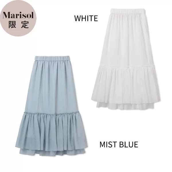 ウエストのギャザーは量感控えめで腰まわりがすっきり、膝下のティアードはたっぷり揺れるメリハリ設計で、はくだけで女っぷりが上がると大人気。シボ感のあるシアーな生地は繊細な雰囲気でありながら、洗濯機で洗えるというのもうれしい。