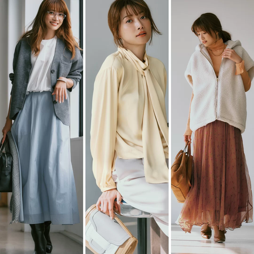 M7days×徳原文子さんの ギャザーフレアスカートコーデ