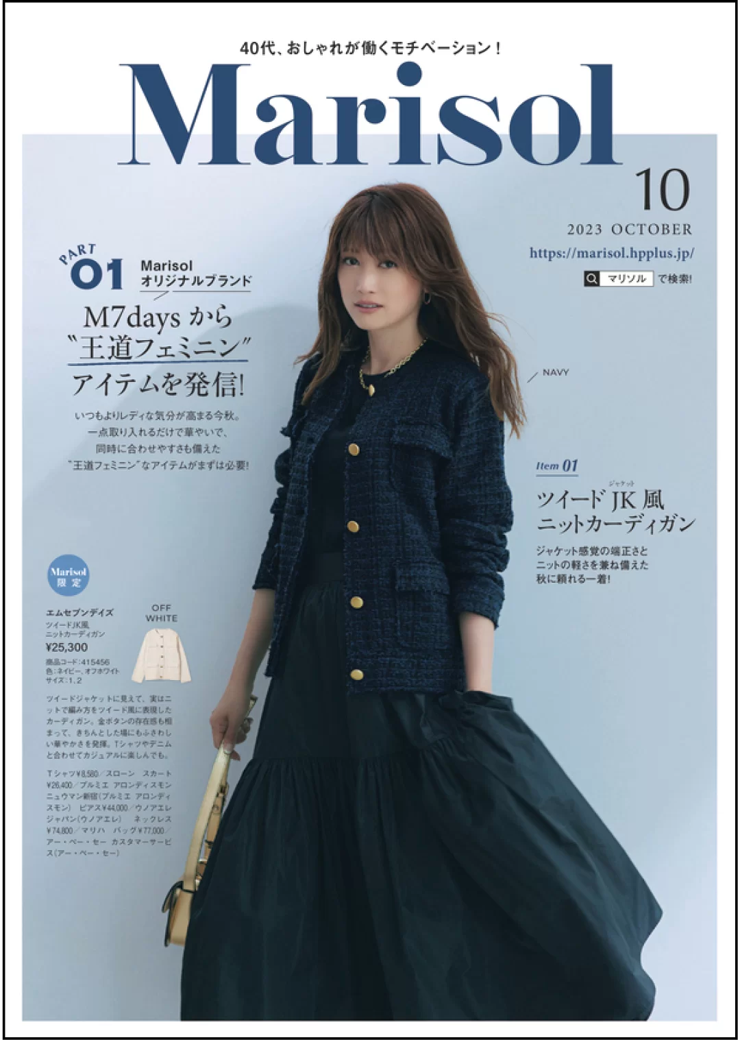 会社で浮かないトレンドのさじかげん。毎日着たくなるセンスのいいベーシック――。大人女性のニーズを知りつくすマリソルが、自信をもって発信するオリジナルブランド。エディターやスタイリストの目線で“いまの気分”を取り入れつつ、体型カバーやお手入れのしやすさへの配慮もしっかり。働く40代のための“本当に使えるワードローブ”を、買いやすいプライスで提案。