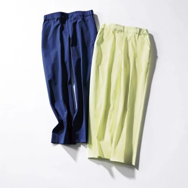 「『エムフィル』とのコラボパンツはウエストゴムの履きやすさときれい見えを叶える名品パンツとして売れに売れています! 接触冷感などの機能が付いた麻混素材は、軽くて涼しく夏向き。ストレッチ入りなのでしわになりにくく、長時間の移動も快適です。わたりから裾にかけて細くなるテーパードシルエットにセンタープレス入りで美脚効果は絶大」(MD Danny)