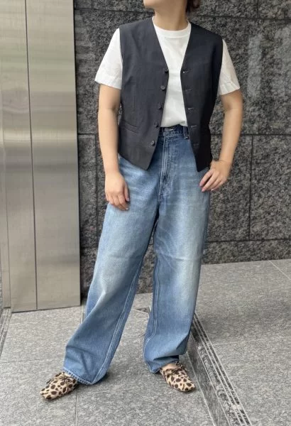 合わせるアイテムを選ばないホワイトは、ジャケットやジレのインナー使いにも重宝します。主張しすぎない絶妙なネック仕様、袖丈のバランスで、シンプルなデニムスタイルでもきちんと感が出ます♪