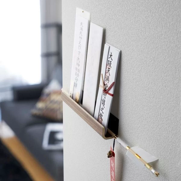 木目が美しい神札ホルダーです。神棚がないご家庭で置き場所に困ってた神札や破魔矢を収納することができます。壁に木ネジを固定するだけで簡単に取付可能です。
