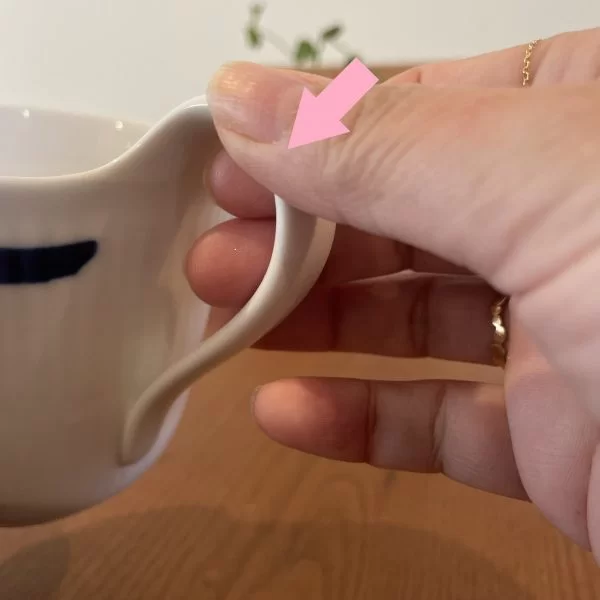 持ち手が特徴のハイハンドルカップ。男性にも使いやすく好評です。上向きにデザインは、熱くなったカップに直接触れずに安心して握れます。温かい飲み物に最適です!