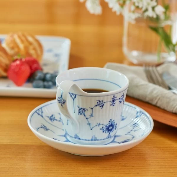 デンマークのラグジュアリーテーブルウェア「ロイヤルコペンハーゲン」。ブルーフルーテッドは、ブランドを象徴するコペンハーゲンブルーと白色の配色や、手描きによる繊細な絵付けが特徴。1775年開窯当時から伝わるパターンで、クールさと優雅さを感じられるシリーズです。