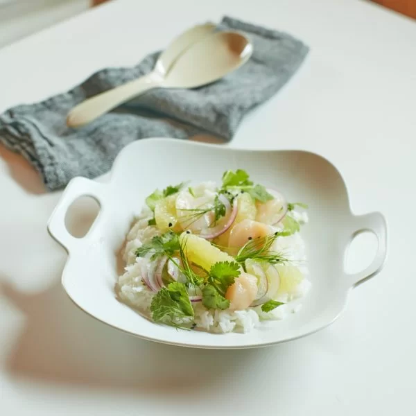 食卓が華やぐ大皿サイズのプレートL。パーティやお祝いのシーンでも活躍します。こんな風にちらし寿司を盛って、ここから取り分けて楽しむのも素敵です。